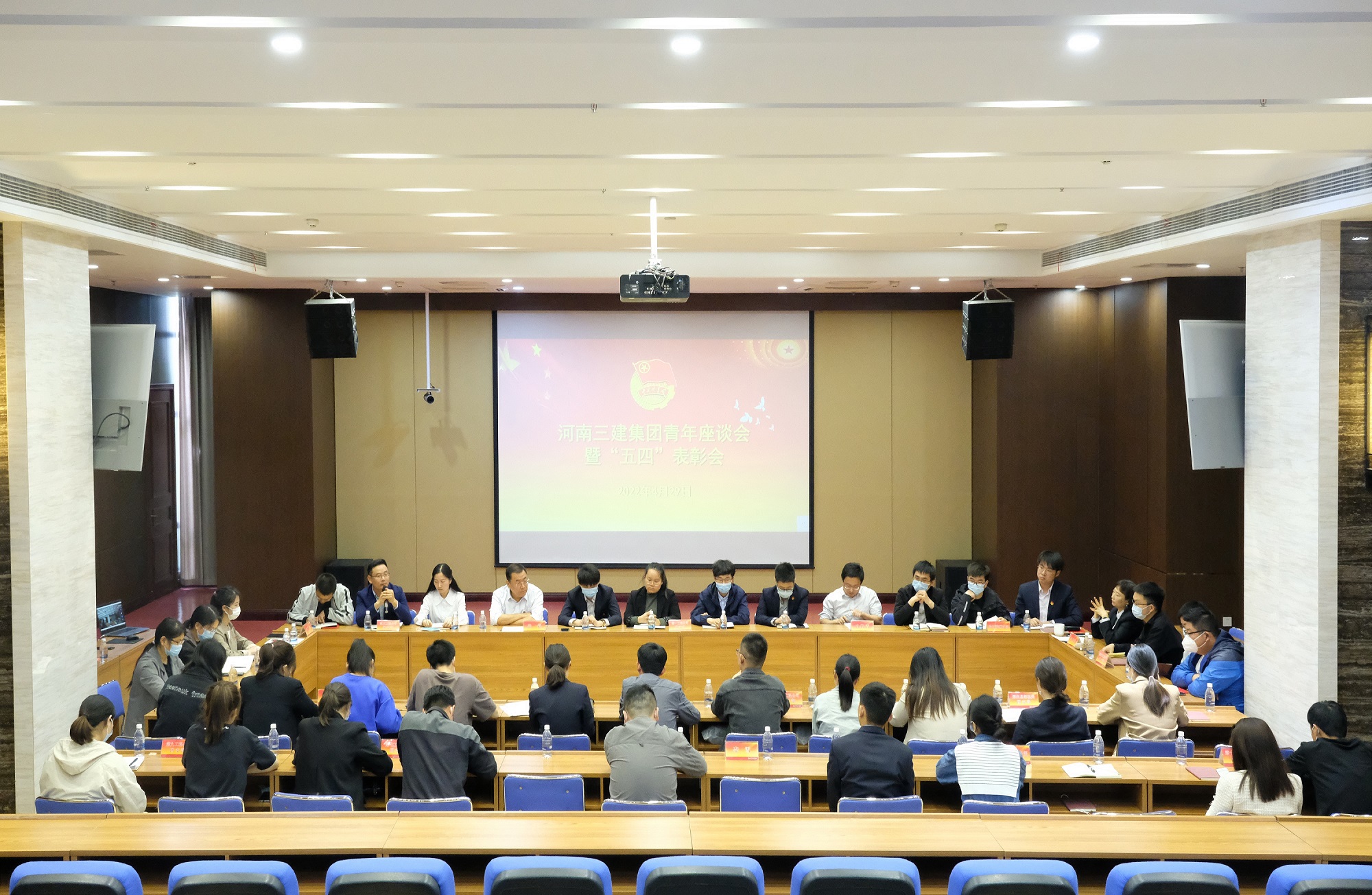 為喜迎二十大和慶祝中國共產主義青年團成立100周年,公司團委圍繞“青春心向黨、建功新時代”的主題組織召開2022年青年座談會暨五四表彰會,集團公司黨委書記張超,黨委副書記趙明侃,董事長、總經理白楊青,副總經理王正濤與40余名青年代表座談交流,了解集團公司青年的工作狀況與思想動態,傾聽青年員工心聲,一起暢談企業發展。會議由團委書記武雨婷主持。