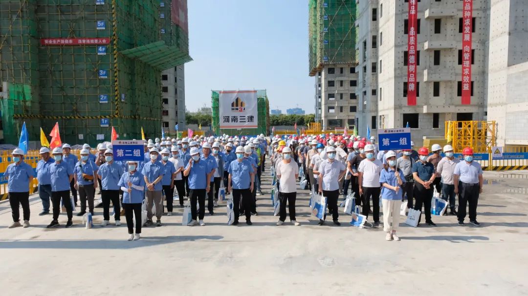 市住建局黨組成員、副局長許向陽,市建設局安全科科長楊森,市建設局安監站站長史雷,城鄉一體化示范區建設局黨組書記、局長杜永麗,澤信地產洛陽公司常務副總經理任曙光,河南海華監理公司項目負責人胡文佳,集團公司總工程師李雪,集團公司副總經理、第三工程公司經理劉德民出席活動,各兄弟單位和集團公司基層單位共計300余人參加觀摩會。